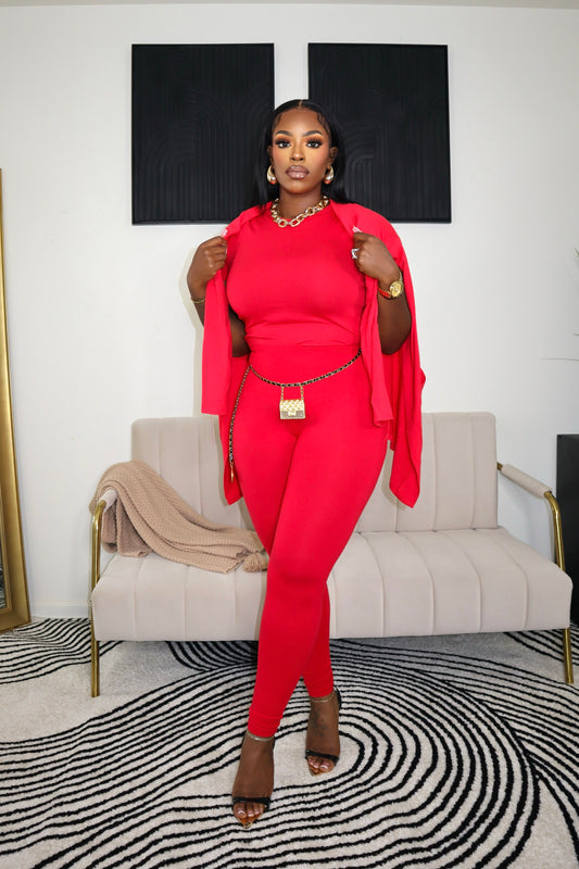 Bella Basic 3 Piece Legging Set - Red
