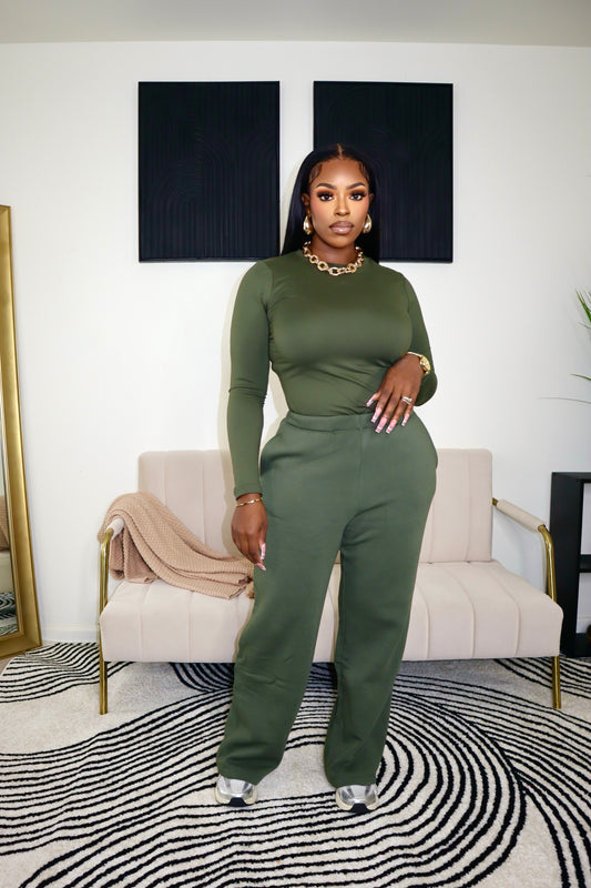 She Got It Pant Set - Olive