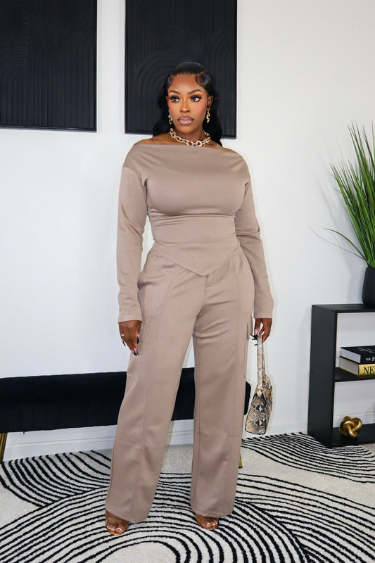 She Got It Pant Set - Taupe